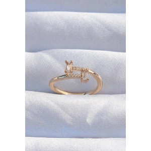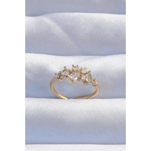 Pirinç Gold Renk Zirkon Taşlı Geometrik Ayarlanabilir Yüzük