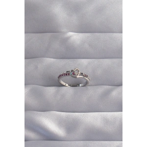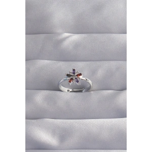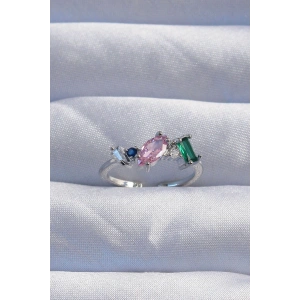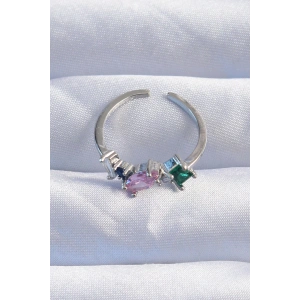 Pirinç Gümüş Renk Renkli Zirkon Taşlı Ayarlamalı Yüzük
