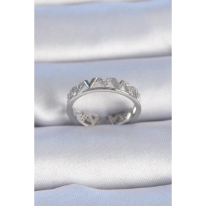 Pirinç Ayarlamalı Gümüş Renk Zirkon Taşlı XOXO Model Yüzük