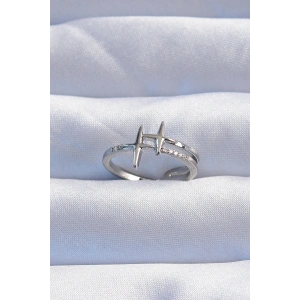 Pirinç Gümüş Renk Zirkon Taşlı 2li Görünüm Ayarlanabilir Yıldız Model Yüzük