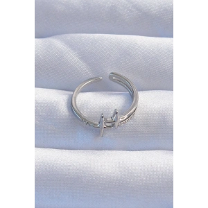 Pirinç Gümüş Renk Zirkon Taşlı Geometrik Ayarlanabilir Yüzük