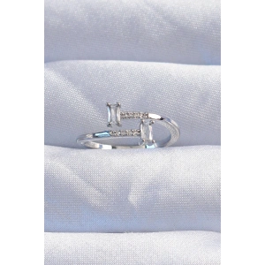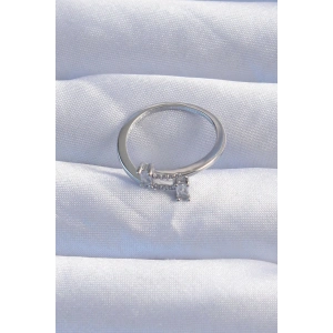 Pirinç Gümüş Renk "V" Model Zirkon Taşlı Kadın Yüzük