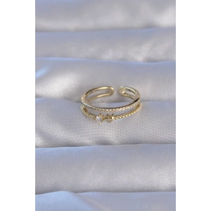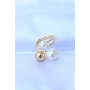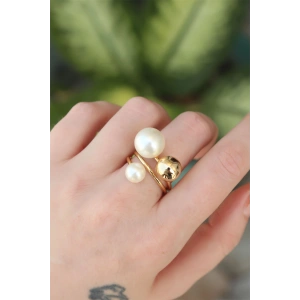 Pirinç Gold Renk Ayarlanabilir İnci Taşlı Yüzük