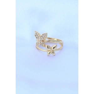 Pirinç Gold Renk Ayarlanabilir Zirkon Taşlı Kelebek Yüzük