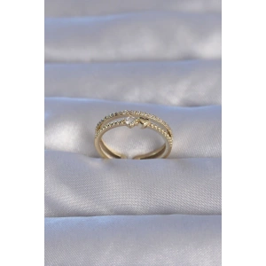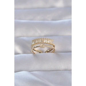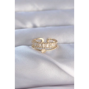 Pirinç Gold Renk Zirkon Taşlı Baget Su Yolu Model Ayarlanabilir Yüzük