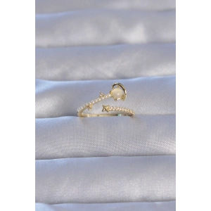 Pirinç Gold Renk Zirkon Taşlı İncili Satürn Model Ayarlanabilir Yüzük