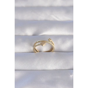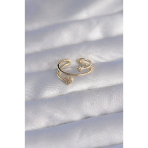 Pirinç Gold Renk Zirkon Taşlı Kalpli Model Ayarlanabilir Yüzük