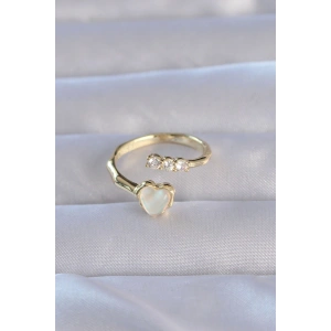 Pirinç Gold Renk Zirkon Taşlı Sedefli Kalp Model Ayarlanabilir Yüzük