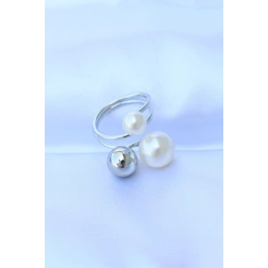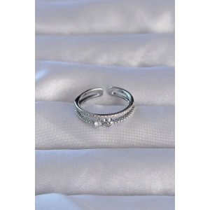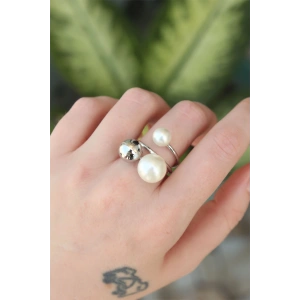 Pirinç Gümüş Renk Ayarlanabilir İnci Taşlı Yüzük