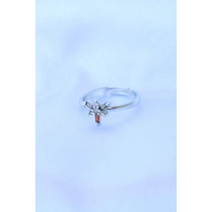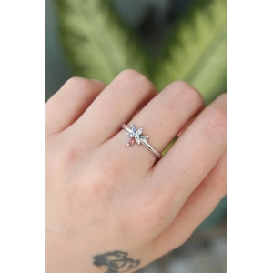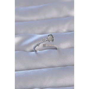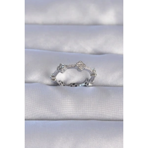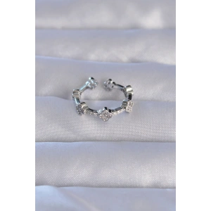 Pirinç Gümüş Renk Zirkon Taşlı Yonca Model Ayarlanabilir Yüzük