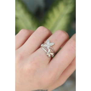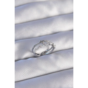 Pirinç Gümüş Renk Ayarlanabilir Zirkon Taşlı Kelebek Yüzük