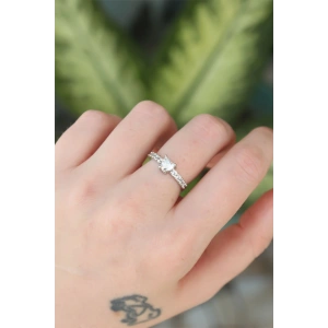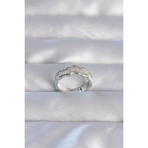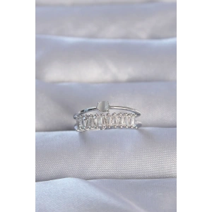 Pirinç Gümüş Renk Zirkon Taşlı Baget Su Yolu Model Ayarlanabilir Yüzük