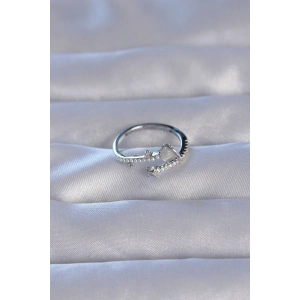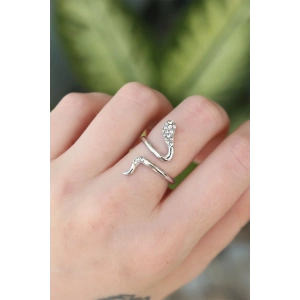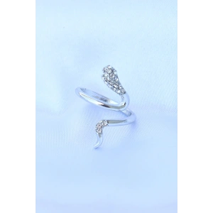 Pirinç Gümüş Renk Ayarlanabilir Zirkon Taşlı Yılan Yüzük