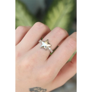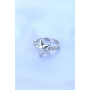 Pirinç Gümüş Renk Ayarlanabilir Zirkon Taşlı Yıldız Yüzük