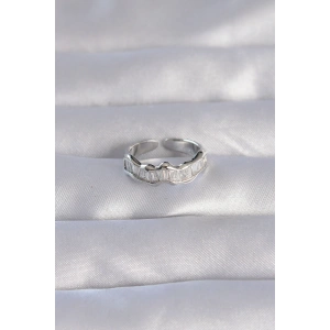 Pirinç Gümüş Renk Zirkon Taşlı Dalgalı Su Yolu Model Ayarlanabilir Yüzük