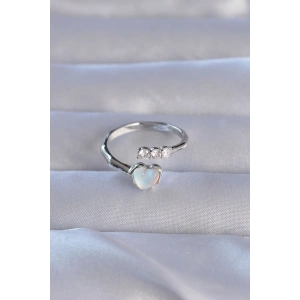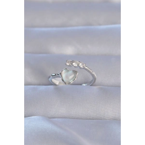 Pirinç Gümüş Renk Zirkon Taşlı Sedefli Kalp Model Ayarlanabilir Yüzük