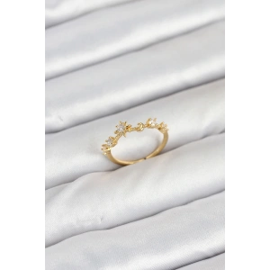 Pirinç Gold Renk Çiçek Model Zirkon Taşlı Kadın Yüzük