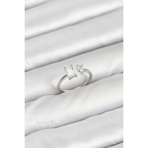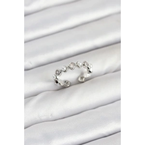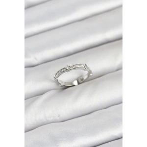 Pirinç Gümüş Renk Kemik Model Zirkon Taşlı Kadın Yüzük