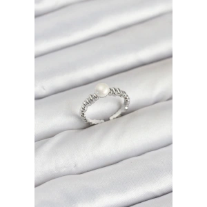 Pirinç Gümüş Renk Göbek İnci Model Kadın Yüzük
