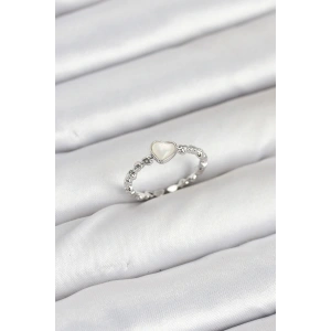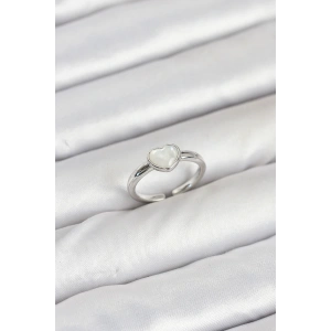 Pirinç Gümüş Renk Kalpli Kadın Yüzük