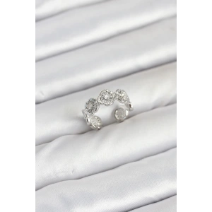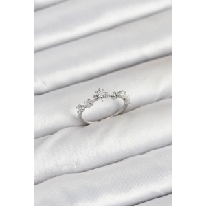 Pirinç Gümüş Renk Çiçek Model Zirkon Taşlı Kadın Yüzük