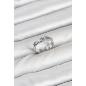 Pirinç Gümüş Renk Mavi Zirkon Taşlı Kutup Yıldızı Model Kadın Yüzük