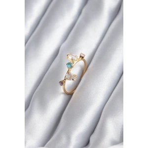 Gold Renk Zirkon Taşlı Renkli Zirkon Taşlı Kadın Yüzük