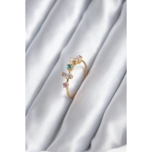 Gold Renk Renkli Zirkon Taşlı Kadın Yüzük