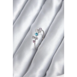 Gümüş Renk Renkli Zirkon Taşlı Kadın Yüzük