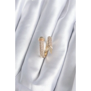 Pirinç Gold Renk Çivi Model Zirkon Taşlı Kadın Yüzük