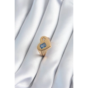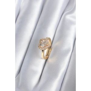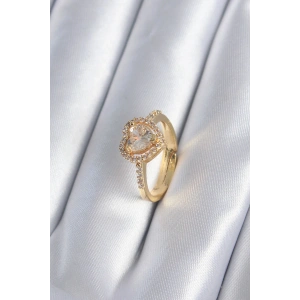 Pirinç Gold Renk Zirkon Taşlı Kalp Charm Model Kadın Yüzük
