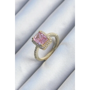 Pirinç Gold Renk Pembe Zirkon Taşlı Kadın Yüzük