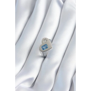 Pirinç Gümüş Renk Zirkon Taşlı Kalp Charm Model Kadın Yüzük