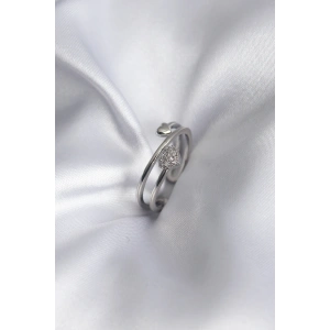 Pirinç Gümüş Renk Zirkon Taş Detay Kalp Model Kadın Yüzük