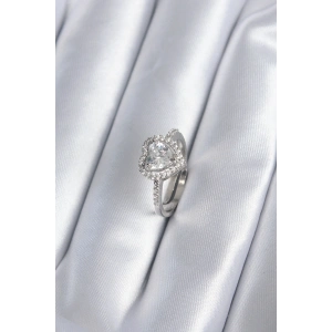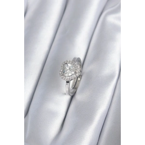 Gümüş Renk Pirinç Zirkon Taşlı Kalp Model Kadın Yüzük