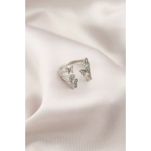 Gümüş Renk Metal Kelebek Model Kadın Yüzük