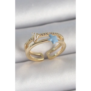 Pirinç Gold Renk 2'Li Zirkon Taşlı Mavi Yıldız Figür Ayarlanabilir Kadın Yüzük