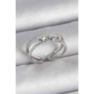 Pirinç Gümüş Renk 2'Li Zirkon Taş Detaylı Kelebek Figür Ayarlanabilir Model Kadın Yüzük