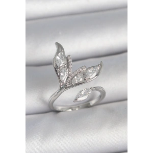 Pirinç Gümüş Renk Zirkon Taşlı Balık Kuyruğu Model Ayarlanabilir Kadın Yüzük