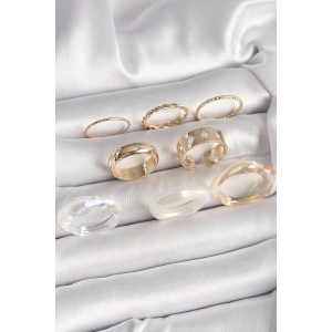 Pirinç Gold Renk Beyaz Akrilik Plastik Modek Kutup Yıldız İşleme Detay Kadın Yüzük Kombini