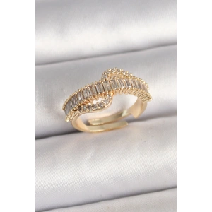 Pirinç Gold Renk Su Yolu Zirkon Taşlı Ayarlanabilir Model Kadın Yüzük