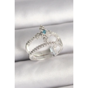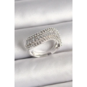 Pirinç Gümüş Renk Zirkon Taşlı Ayarlanabilir Model Kadın Yüzük
