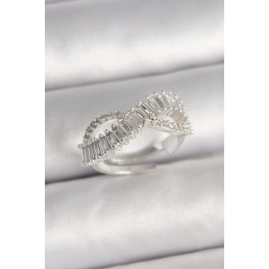 Pirinç Gümüş Renk Su Yolu Zirkon Taşlı Ayarlanabilir Model Kadın Yüzük