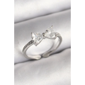 Pirinç Gümüş Renk Zirkon Taşlı Kalp Fiyonk Model Kadın Yüzük