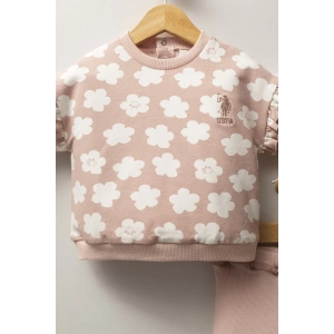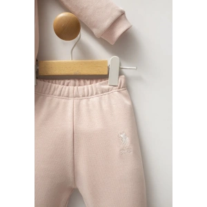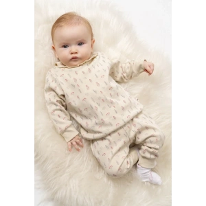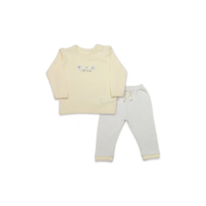 9-12-18-24 Ay Pohh Desenli Uzun Kollu Sweat 2Li Kız Erkek Bebek Takımı Krem