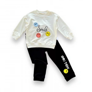 6-9-12-18 Ay Emoje Baskılı Pamuk Penye Kumaş Erkek Bebek Takımı Siyah