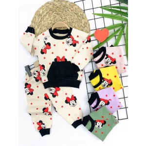 9-12-18-24 Ay Mickey Ve Arkadaşları Desenli Uzun Kollu Sweat 2Li Kız Erkek Bebek Takımı Yeşil