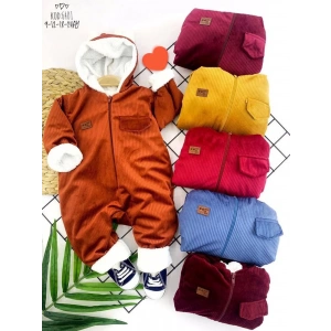 3-6-9-12 Ay Fermuar Kapamalı Kadife Kumaş İçi Tüylü Kız Erkek Bebek Tulumu Kahverengi