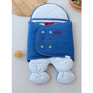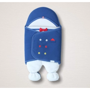Yenidoğan Açılır Kucaklı Smokin Ayaklı Erkek Bebek Kundak Mavi