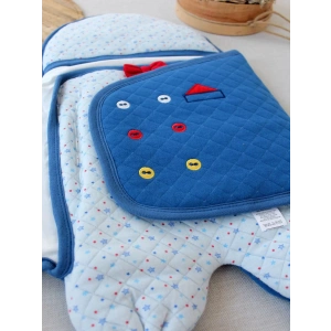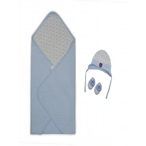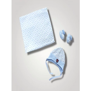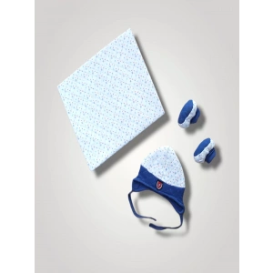 Yenidoğan Baskılı Double Face Şapka Ve Patikli 3Lü Bebek Battaniye Takımı Mavi